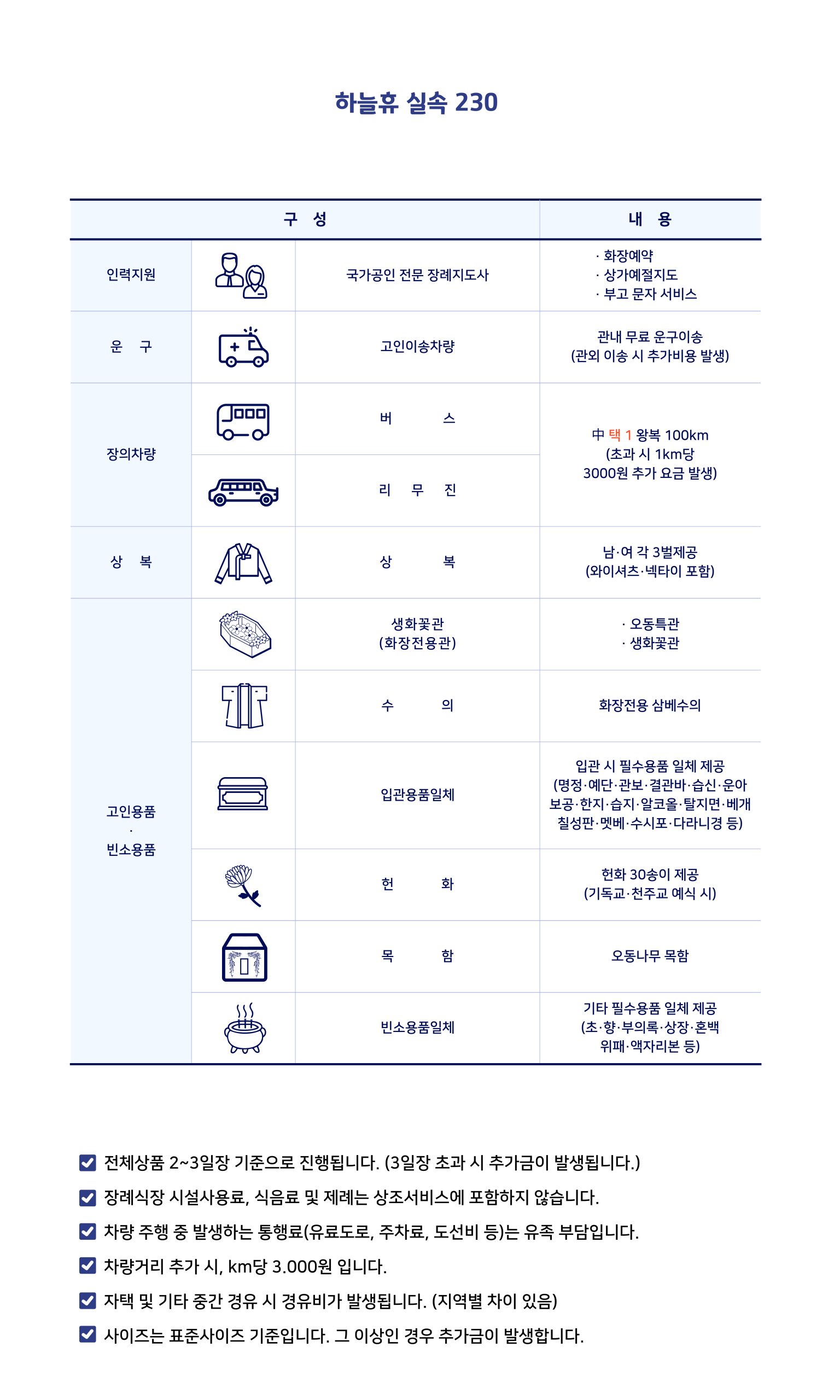 대구후불제상조 부산후불제상조 하늘휴상조의 실속상품은 필요한 것만 담은 실속서비스로 마지막 예와 효는 결코 줄이지않습니다. 전담 장례지도사 1:1 동행, 상담–의전 설계–입관,발인–안치·장지 안내까지 처음부터 끝까지 함께합니다. 합리적 비용과 불필요한 옵션 권유가 없어 가족분들의 부담을 최소화할 수 있습니다. 100% 후불결제로 안심하고 이용하실 수 있습니다. 장례예식 총괄 진행으로 복잡한 장례 절차를 해소할 수 있습니다. 장례진행·고인운구·장지상담 유골함준비·개장/이장까지 한 곳에서 준비하실 수 있습니다. 장례전문가가 24시간 대기하며 장례상담과 긴급출동 서비스로 갑작스러운 상황에도 즉시 대응합니다.