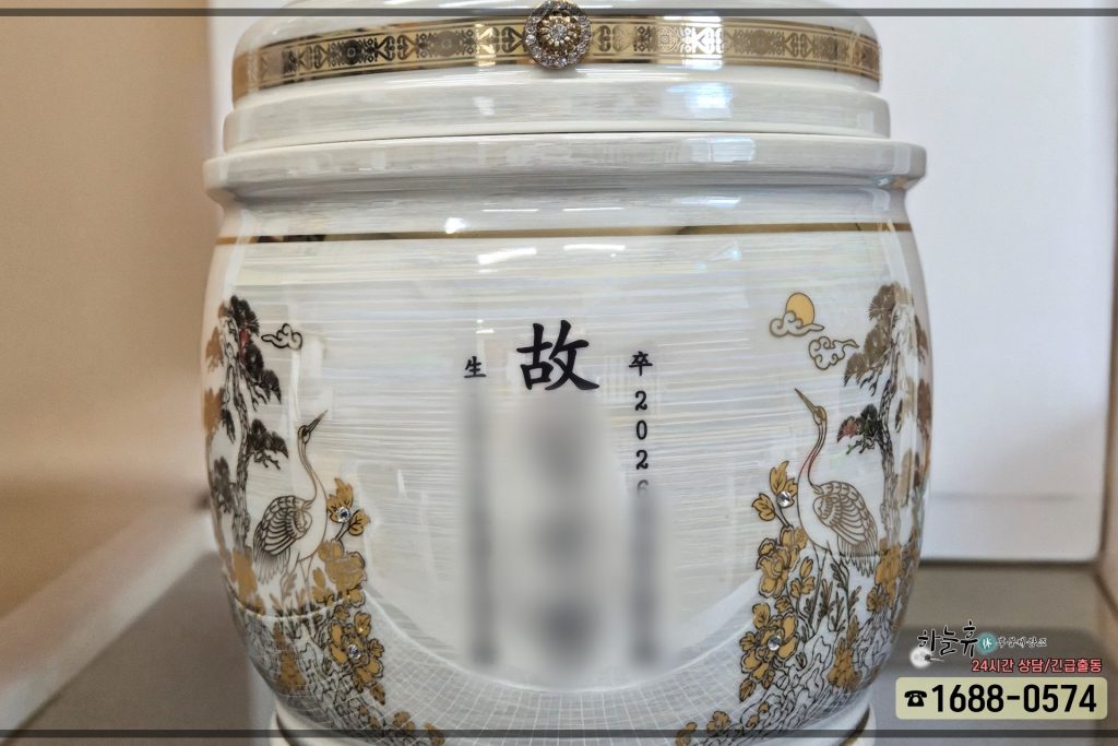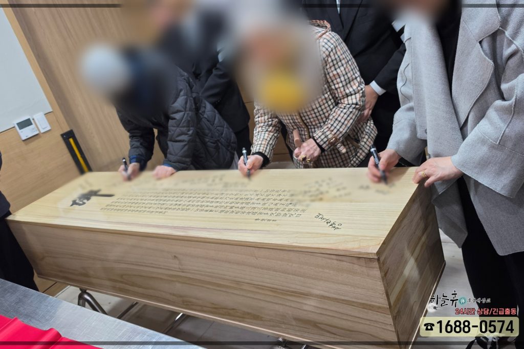 화장 후 고인을 모실 유골함에 대해서도 깊은 대화를 나누었습니다. 장지가 선영에 있어 실내가 아닌 야외 문중 봉안담에 안치하시기로 결정하셨기에, 외부의 습기나 급격한 온도 변화에 끄떡없는 하늘휴의 고기능성 유골함을 추천해 드렸습니다. 야외 안치 시 발생하기 쉬운 결로 현상이나 벌레 등의 문제를 사전에 완벽히 차단할 수 있는 제품이라 가족분들께서도 무척 안심하셨습니다. 겉면에는 고인의 존함과 생년, 졸년월일을 깔끔하게 각인하여 한 치의 부족함 없이 꼼꼼하게 준비해 두었습니다.