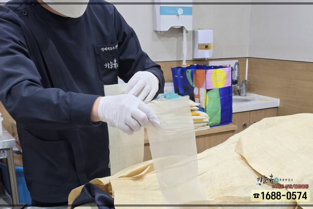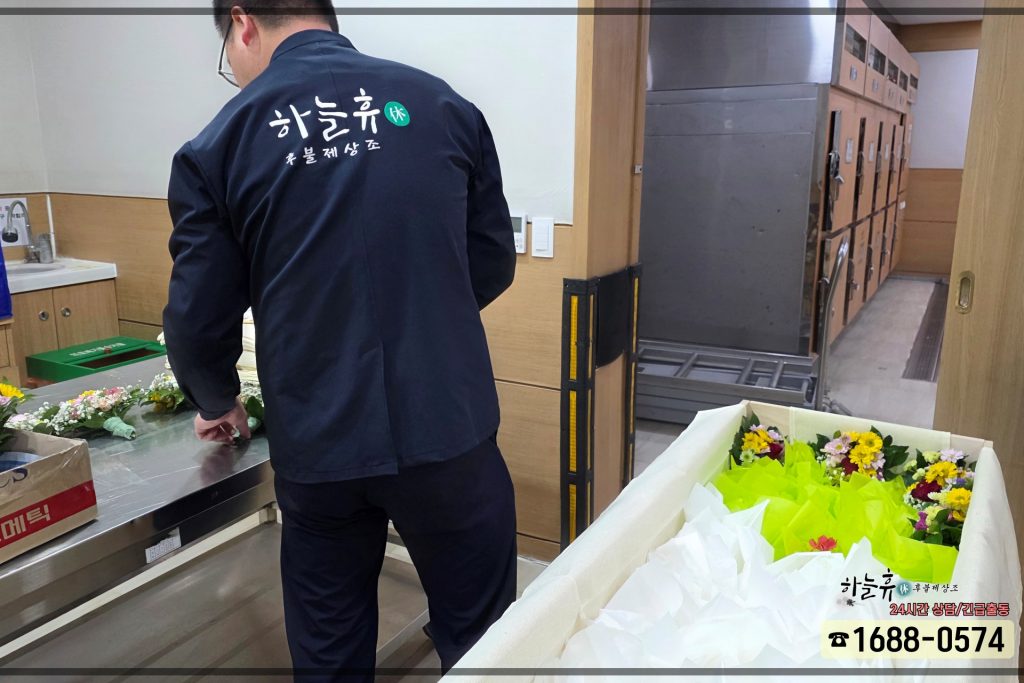 임종 후 절차들을 모두 마무리하고 나니 늦은 저녁이었습니다. 당일 곧바로 빈소를 차리는 것은 유가족분들의 체력적으로나 시간상으로 무리였기에, 가족분들과 깊이 상의하여 다음 날 오전 일찍 본격적인 준비를 시작하기로 뜻을 모았습니다.
